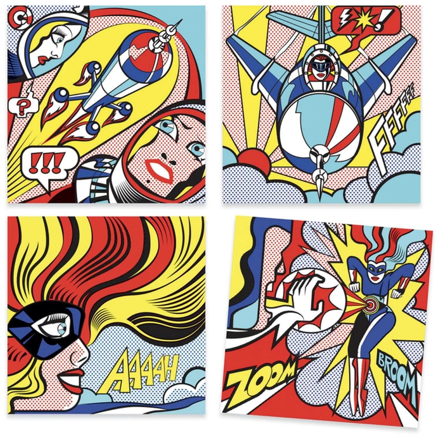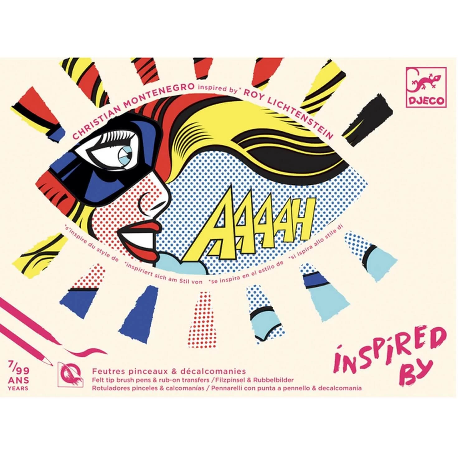 Une activité de coloriage et de décalcomanies qui propose de découvrir le style de Roy Lichtenstein, grand maître du pop art. Les tableaux sont mis en couleur grâce aux pinceaux, puis les détails sont ajoutés grâce aux planches de transfert. Les trames à poids sont particulièrement caractéristiques de l’artiste !