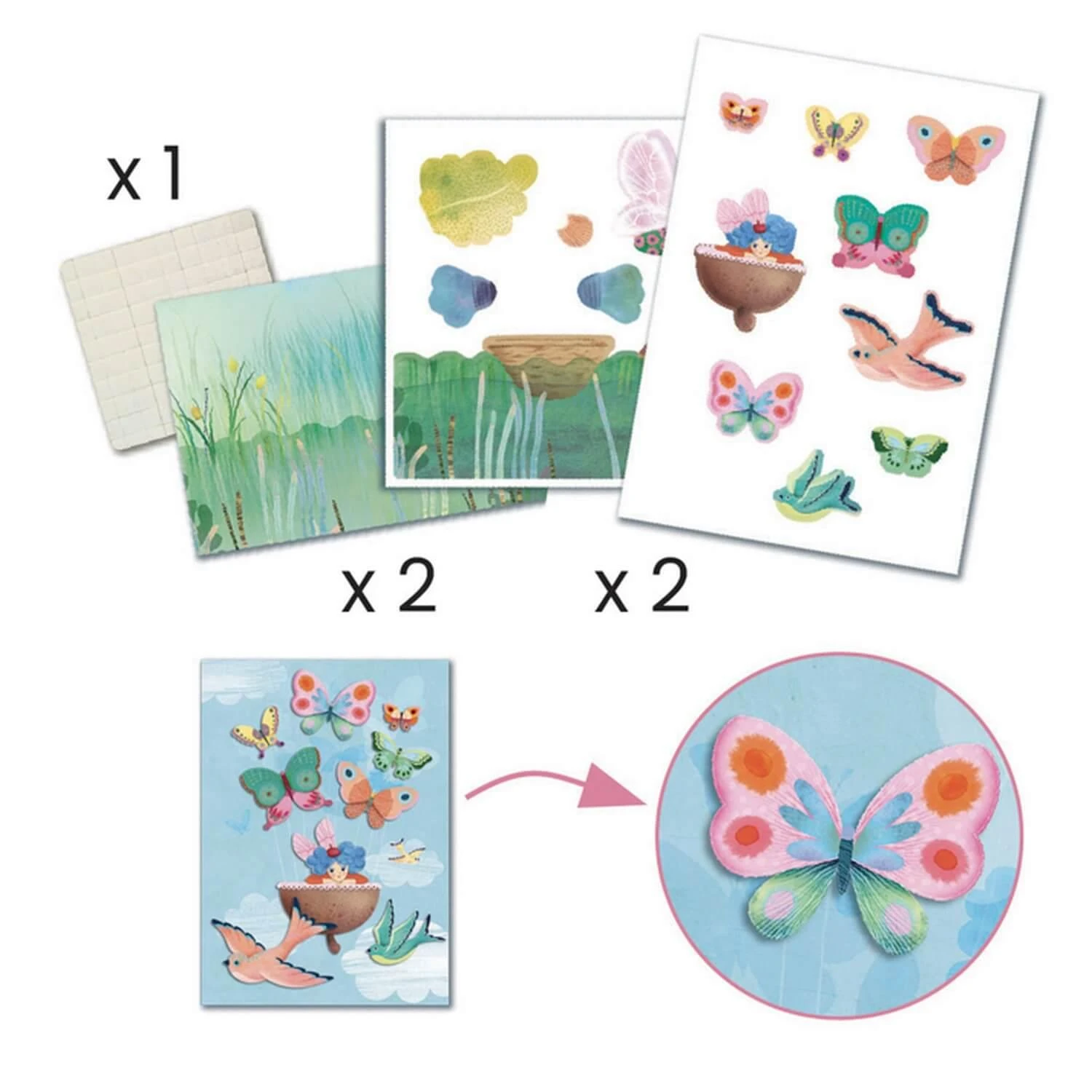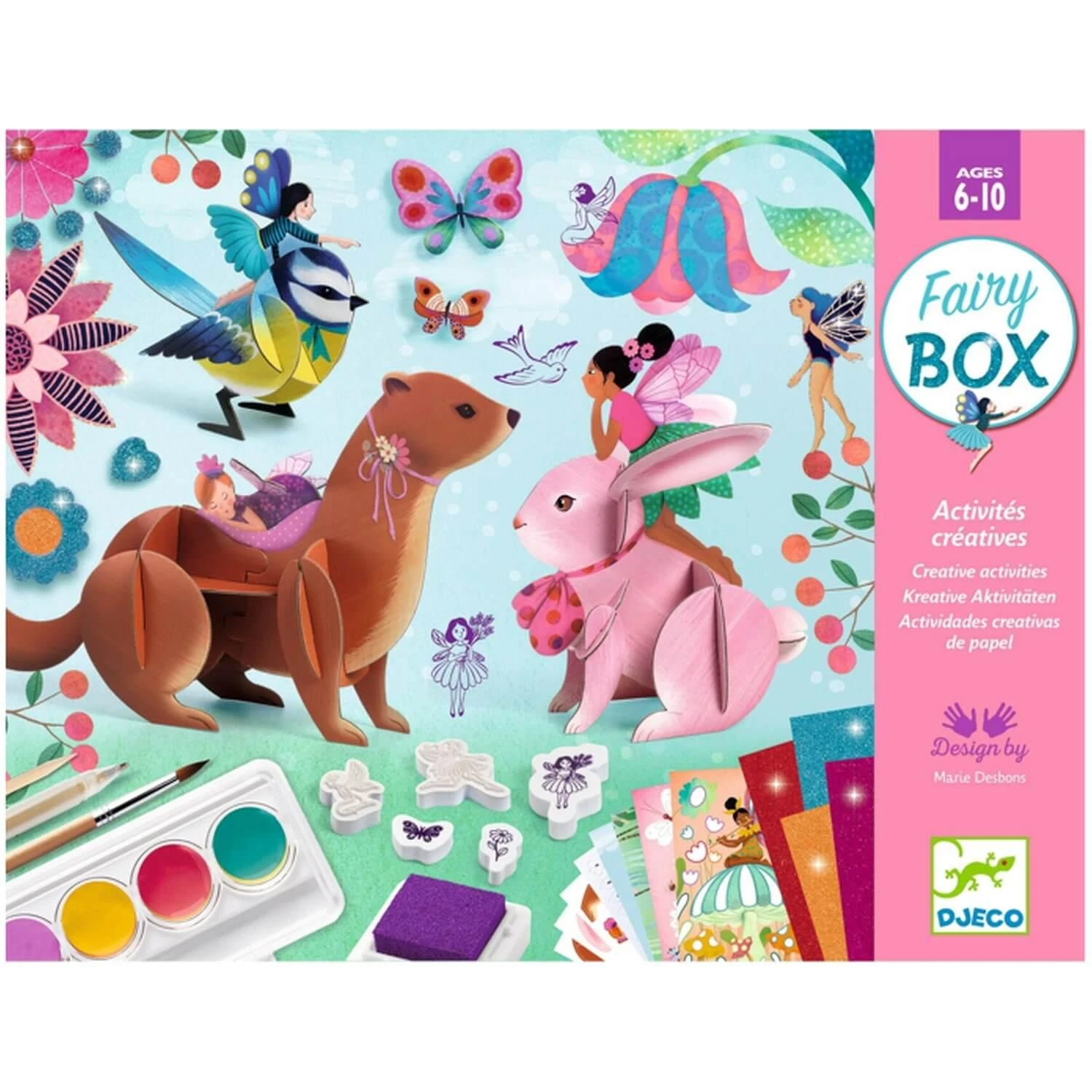 Découvrez le coffret contenant 6 activités créatives de la marque Djeco : Conte de fées.