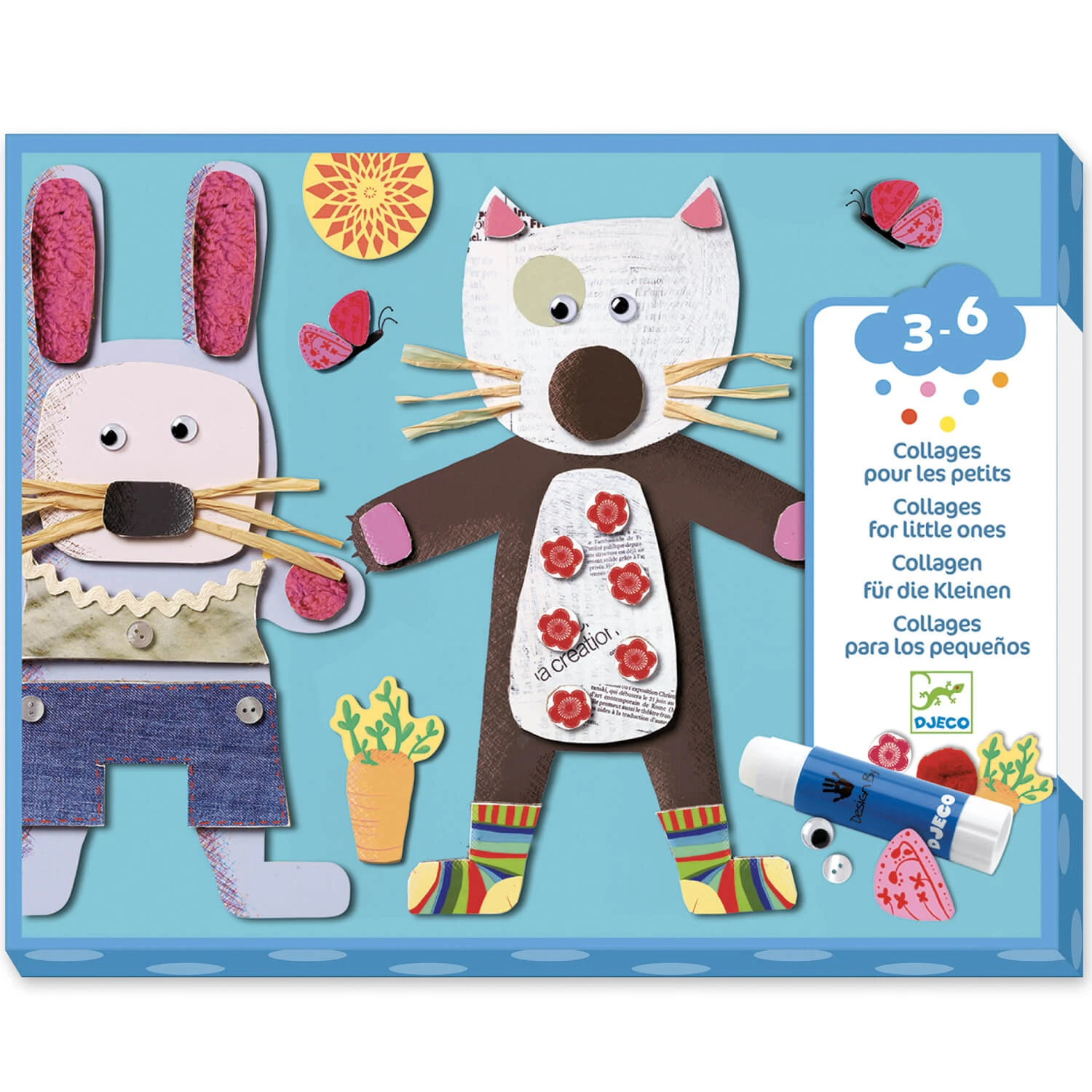 Le coffret collages des petits Djeco est idéal pour stimuler l’imagination et la créativité des petits artistes en herbe !