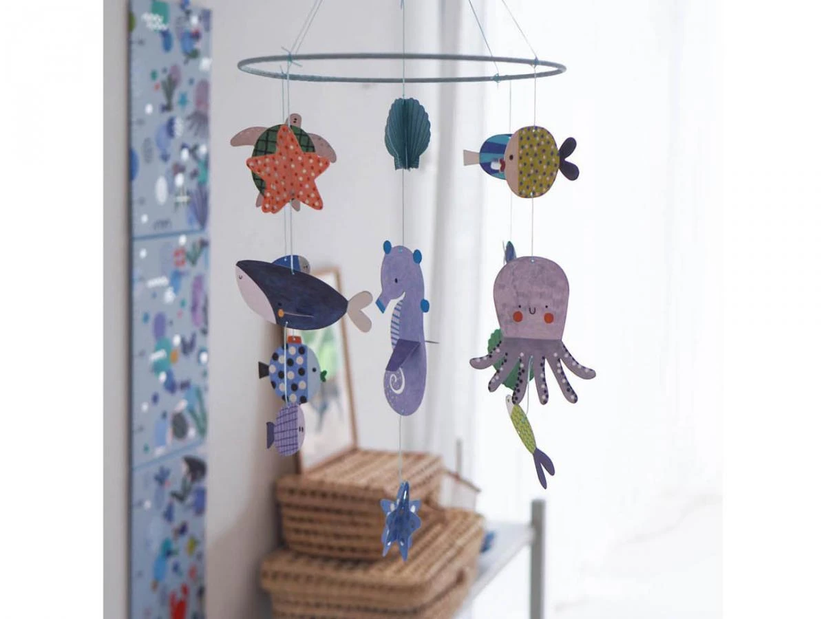 Plongez Ă la dĂ©couverte du monde aquatique avec ce mobile sur le thème de la mer. Un bel objet pour dĂ©corer une chambre d’enfant. DĂ©jĂ assemblĂ©, il n’y a plus qu’à le fixer et admirer les Ă©lĂ©ments dans les airs. La collection Djeco Mobiles, une rencontre poĂ©tique et aĂ©rienne entre deux mondes, le design et l’illustration. Un subtil jeu d’équilibre entre rĂŞve et rĂ©alitĂ©.