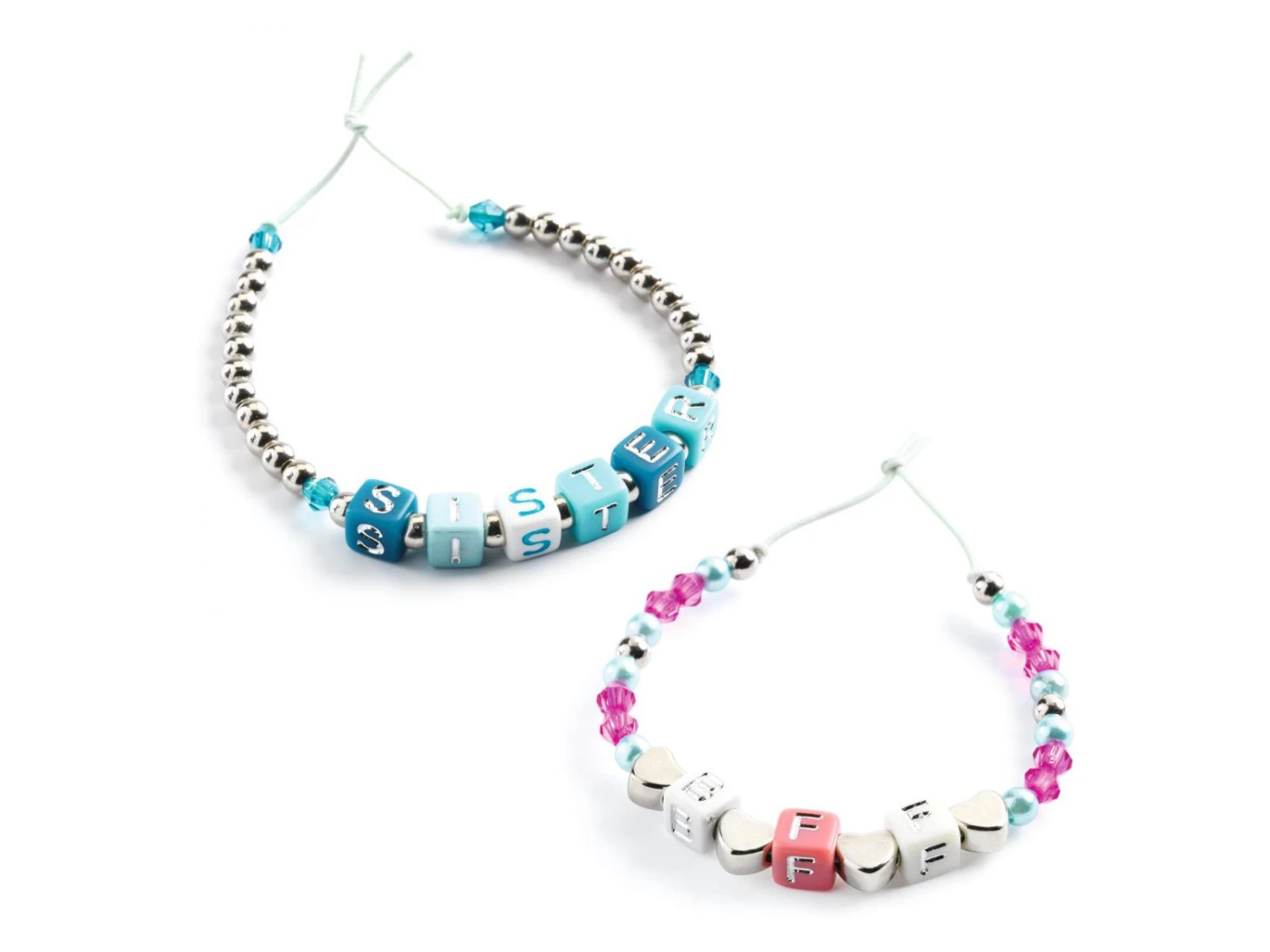 Un coffret très complet contenant 1 000 perles pour créer de jolis bracelets avec des prénoms ou des messages. Un assortiment de perles colorées et argentées, bien pensé pour un résultat toujours harmonieux. L’enfant enfile sur les fils élastiques les perles pour réaliser de jolis bracelets en toute liberté.