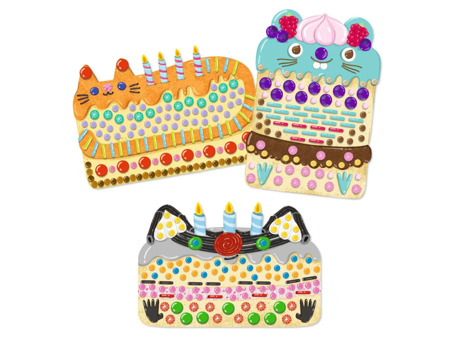 Une activitĂ© de collage pour crĂ©er des gâteaux trop mignons et s’initier Ă la mosaĂŻque. En suivant le livret explicatif, l’enfant colle les gommettes colorĂ©es et illustrĂ©es pour dĂ©corer 3 dĂ©lices silhouettĂ©s.