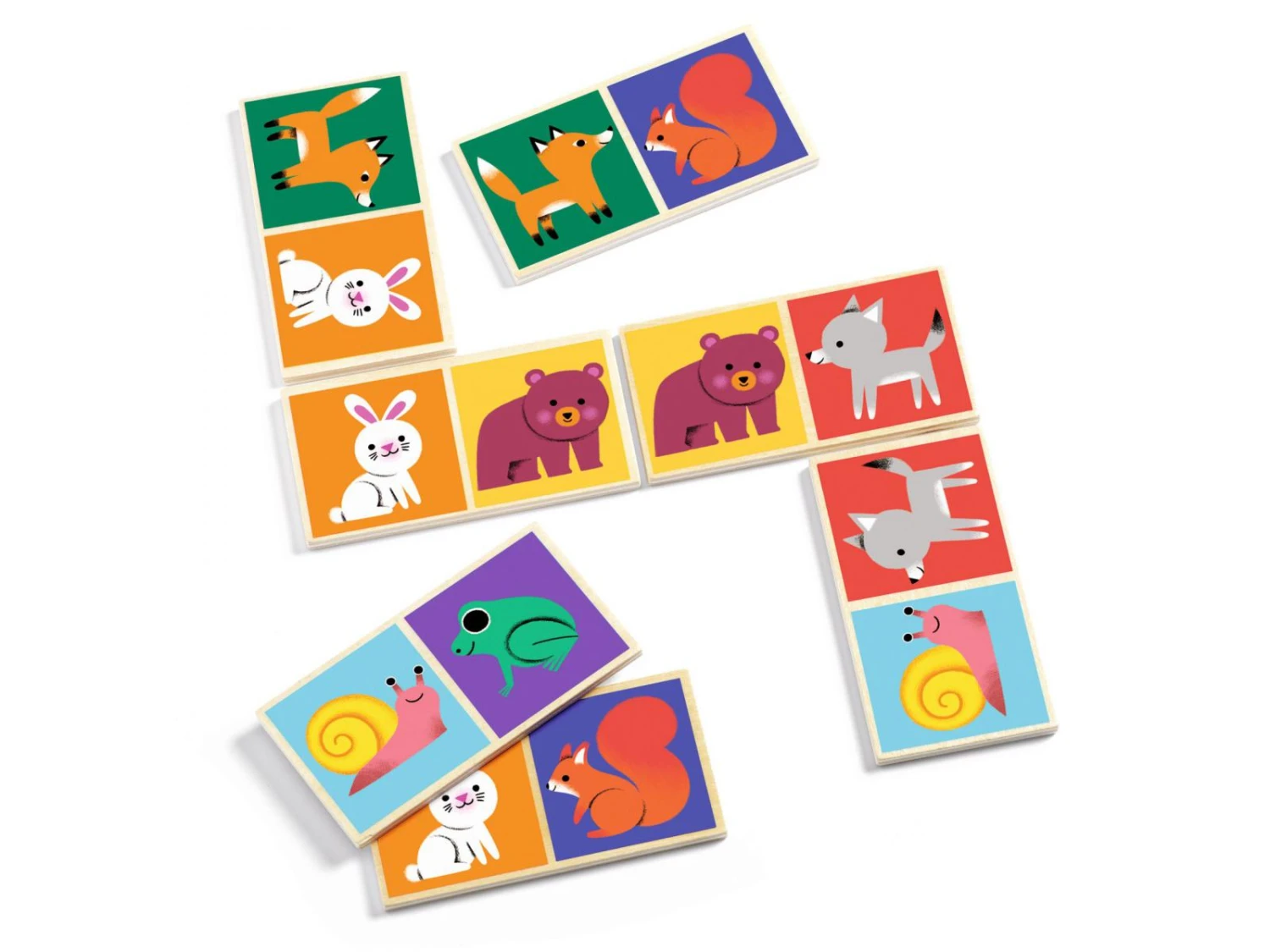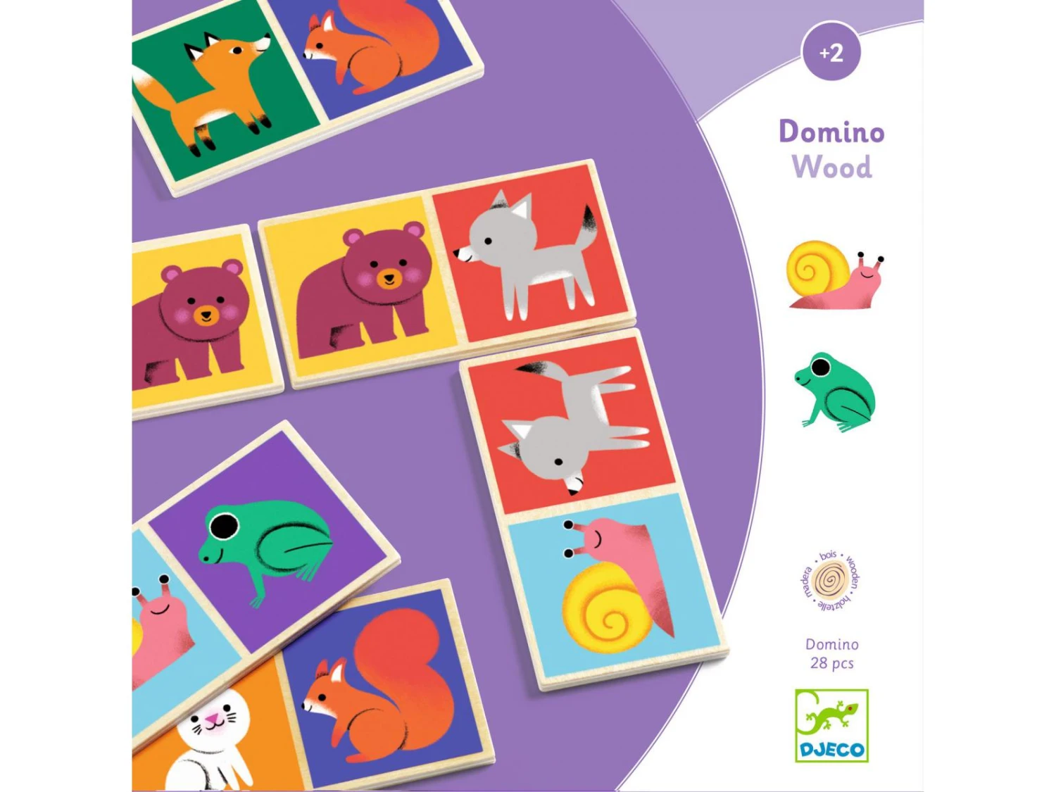 Un jeu de domino sur le thème des animaux de la forêt. Deux faces de jeux : une face illustrations, une face constellations. L’enfant assemble les animaux ou les chiffres pour former une suite logique. Un jeu éducatif idéal dès 2 ans pour apprendre tout en s’amusant.