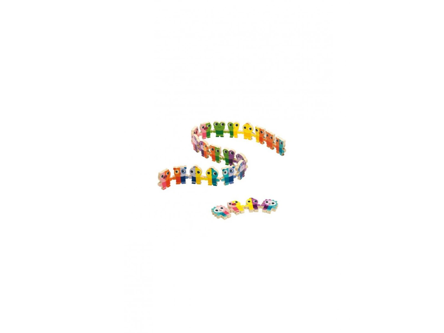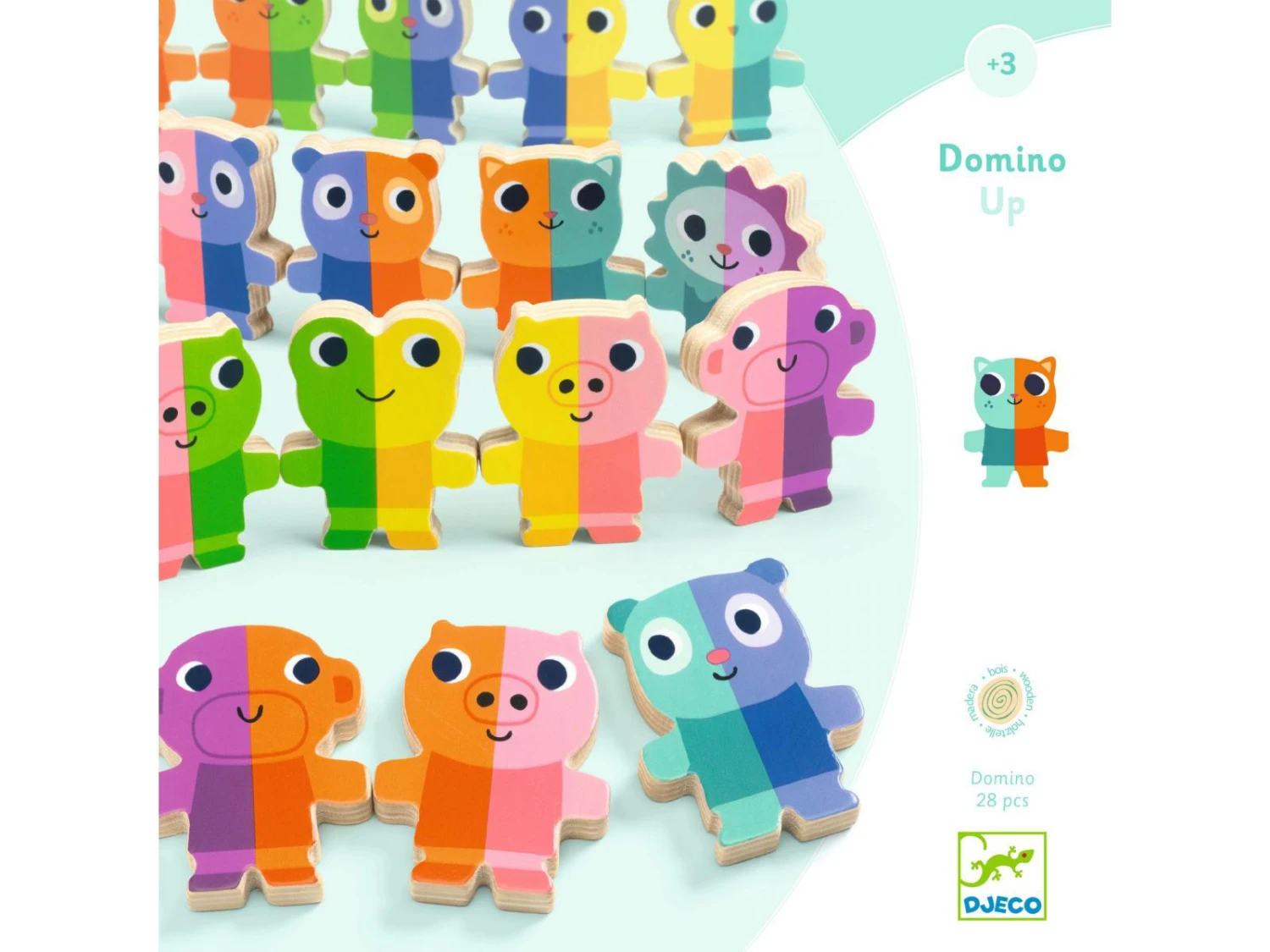 Un jeu de dominos en forme d’animaux colorés dès 3 ans. L’enfant associe les dominos en bois en suivant les couleurs pour former une suite colorée.