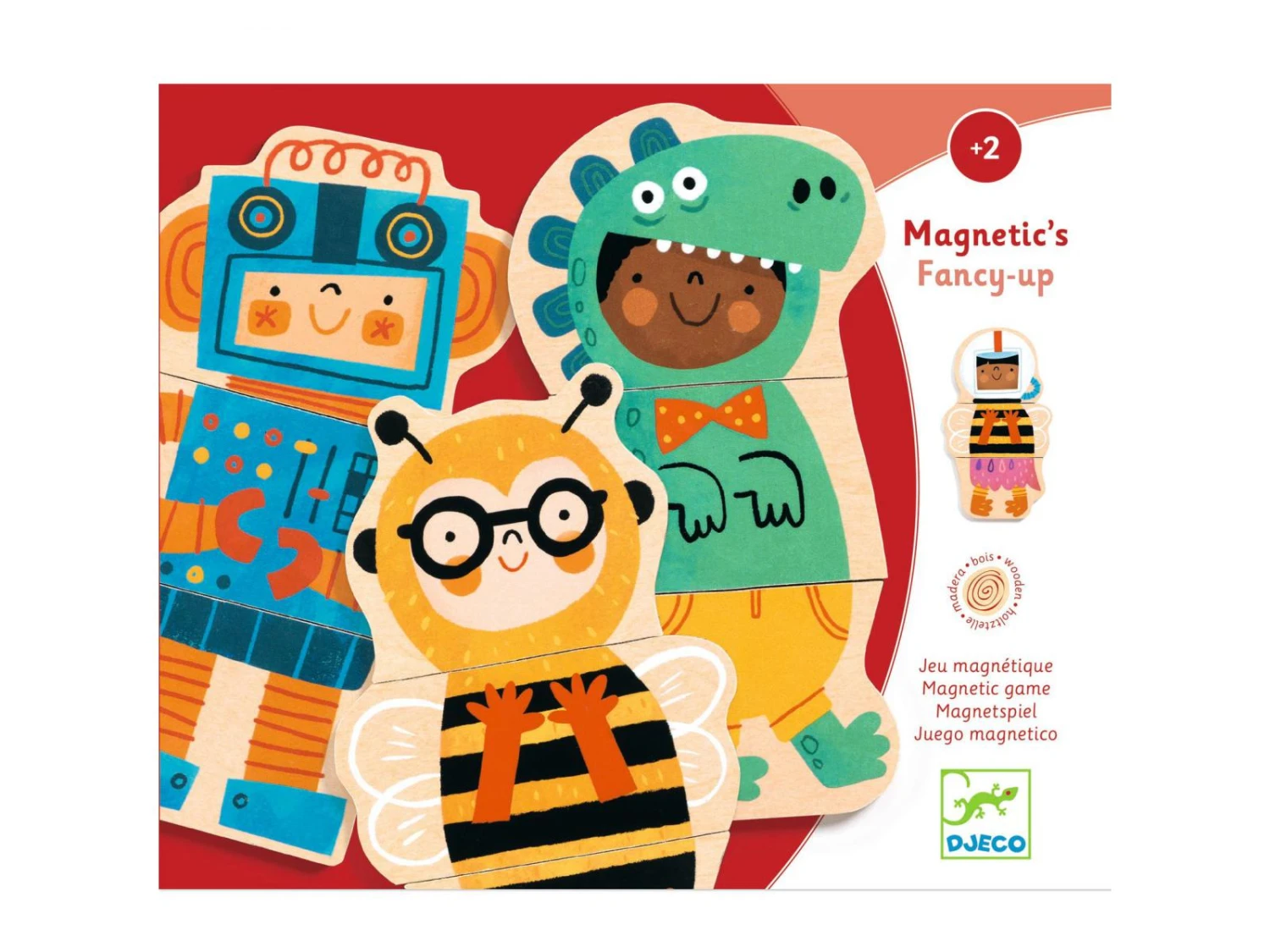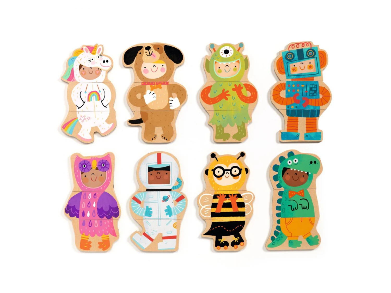 Un coffret de 24 pièces magnétiques en bois pour reconstituer des enfants déguisés ou en imaginer d’autres plus rigolos. L’enfant aide le cosmonaute à retrouver son corps et ses jambes !