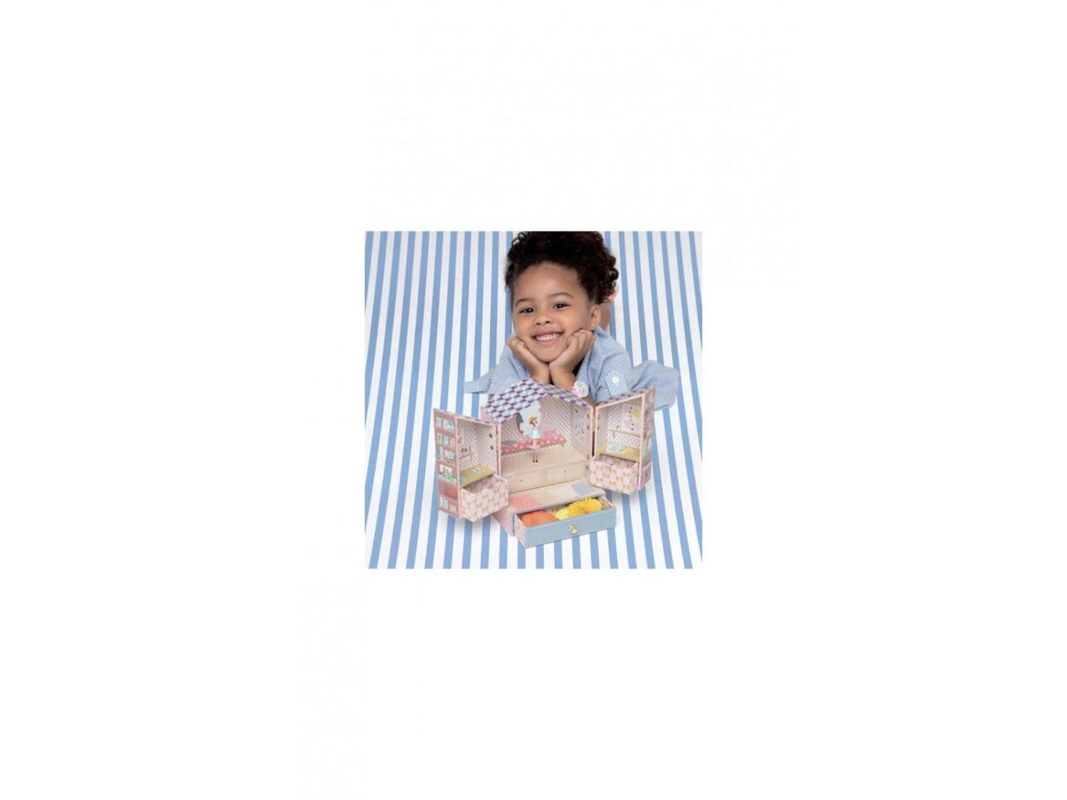 Tinou Shop est une boîte à musique joliment illustrée avec trois tiroirs pour ranger ses bijoux et secrets. Tournez la manivelle, ouvrez les portes de ce joli magasin, et surprise ! Une fillette finement sculptée tourne et se reflète sur un miroir silhouetté au son de la musique « La flûte enchantée » de Wolfgang Amadeus Mozart.