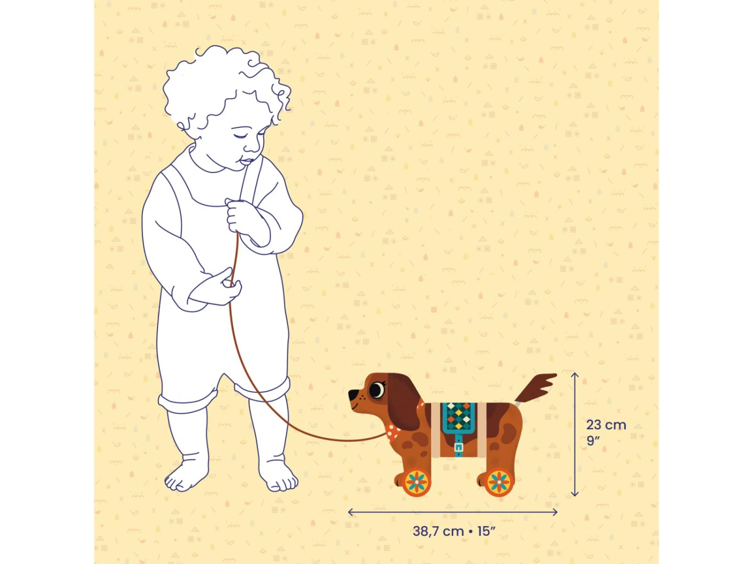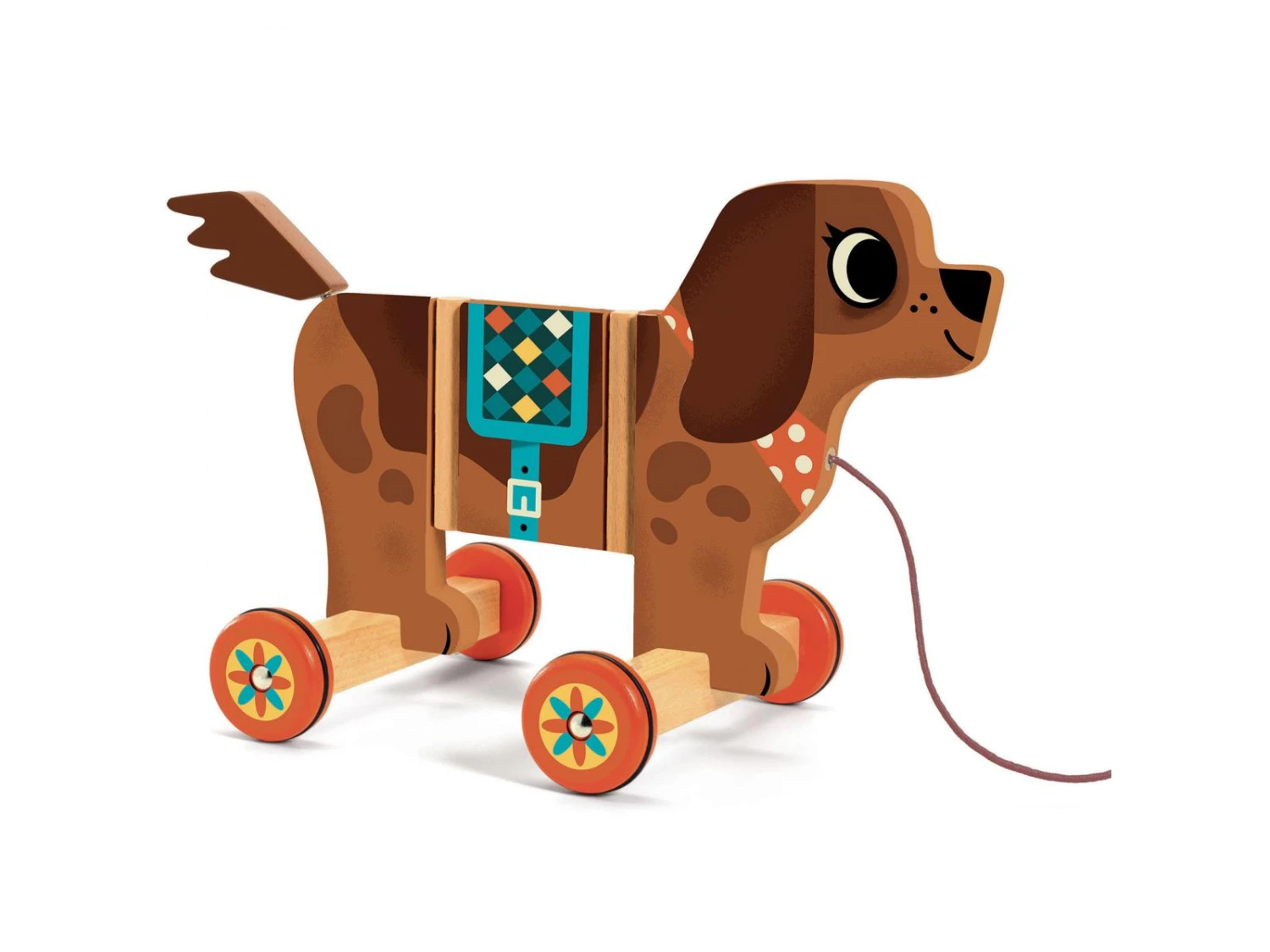 Nico est un grand chien articulé à traîner qui se dandine lorsqu’on le promène.