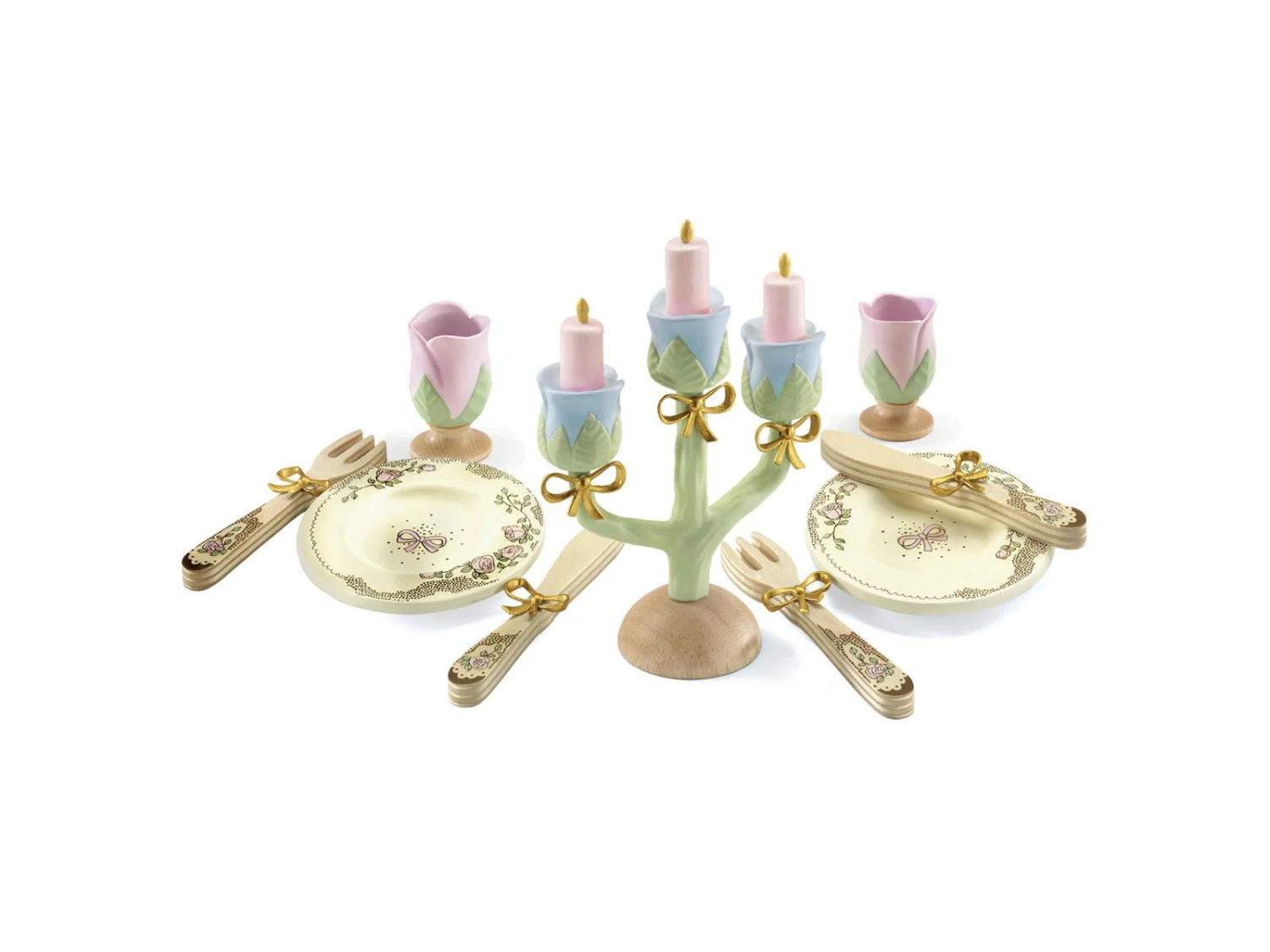 Un set de dinette pour 2 princesses; un couvert raffiné pour diner aux chandelle en tête à tête.En complément de jeu, les gâteaux de princesse ref DJ06523