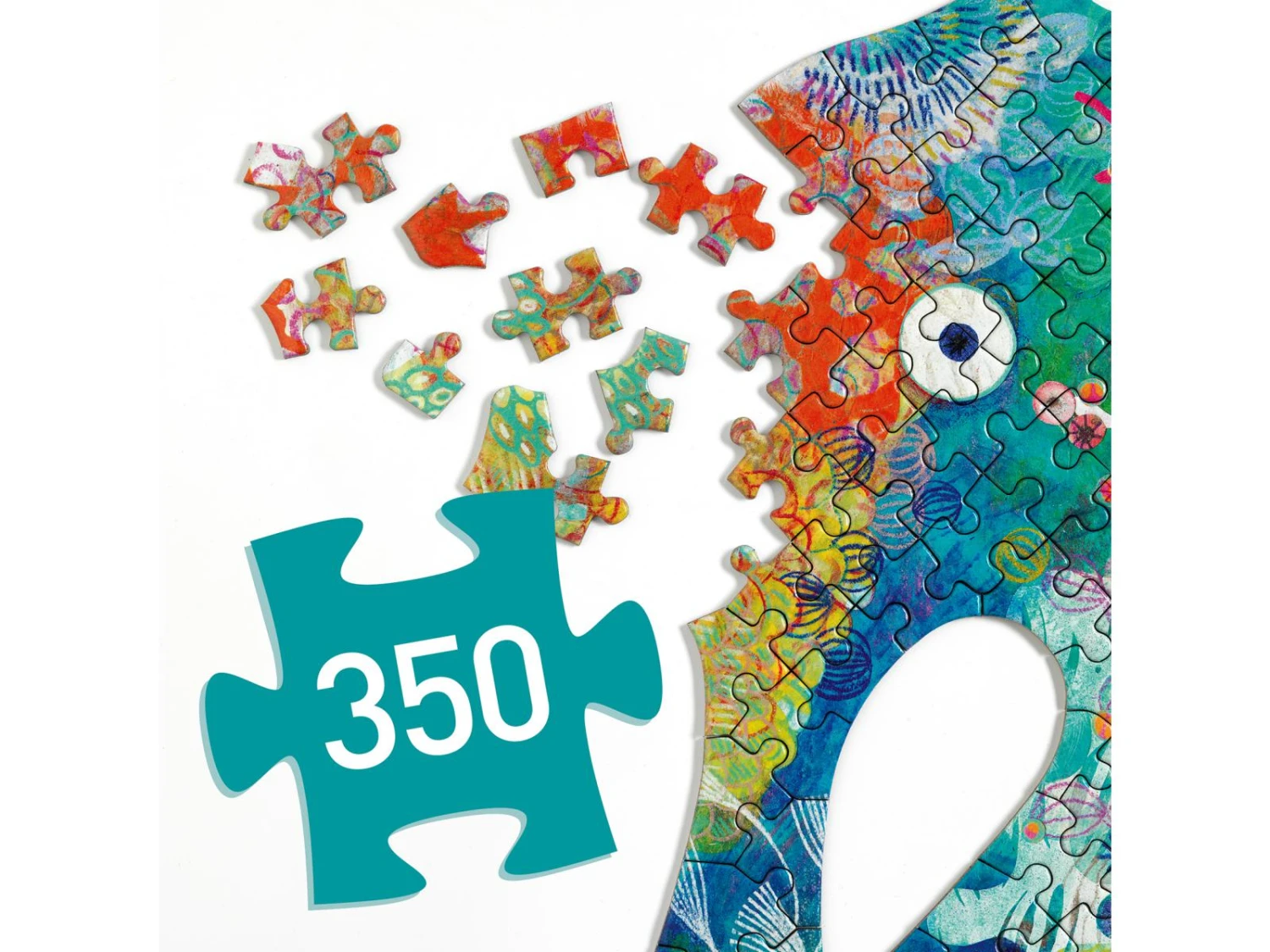 Le Puzz’Art Sea Horse est un puzzle de 350 pièces. Dans un format inédit, sans coin ni bordure, tout l’art du puzzle est bousculé. L’enfant découvre à travers cette grande silhouette ajourée un hippocampe, dans lequel fourmille un monde imaginaire.