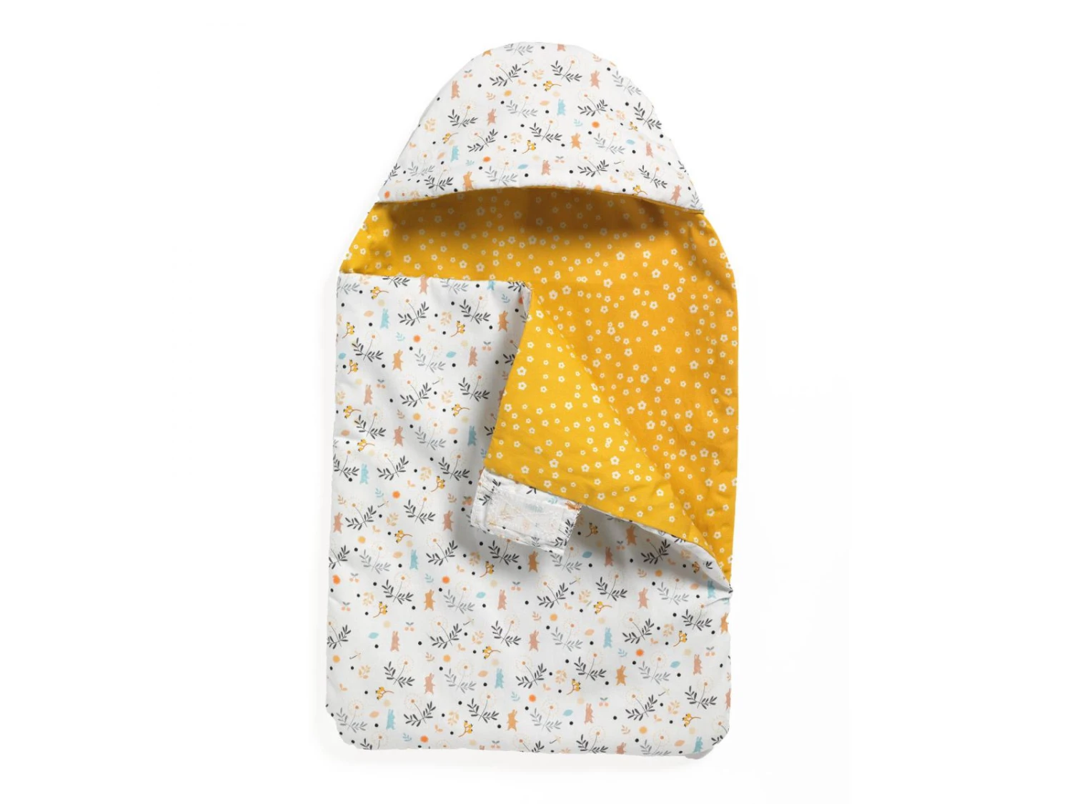 Un nid d’ange aux couleurs et motifs tendance, en coton ouatĂ© imprimĂ© intĂ©rieur et extĂ©rieur.