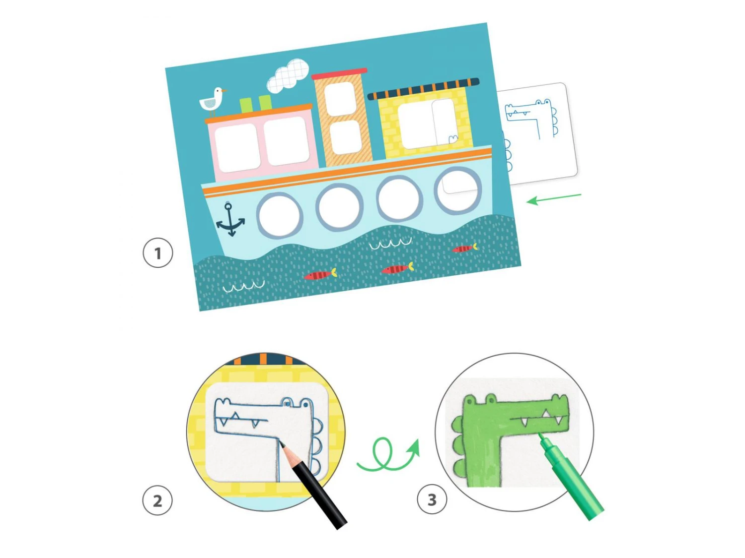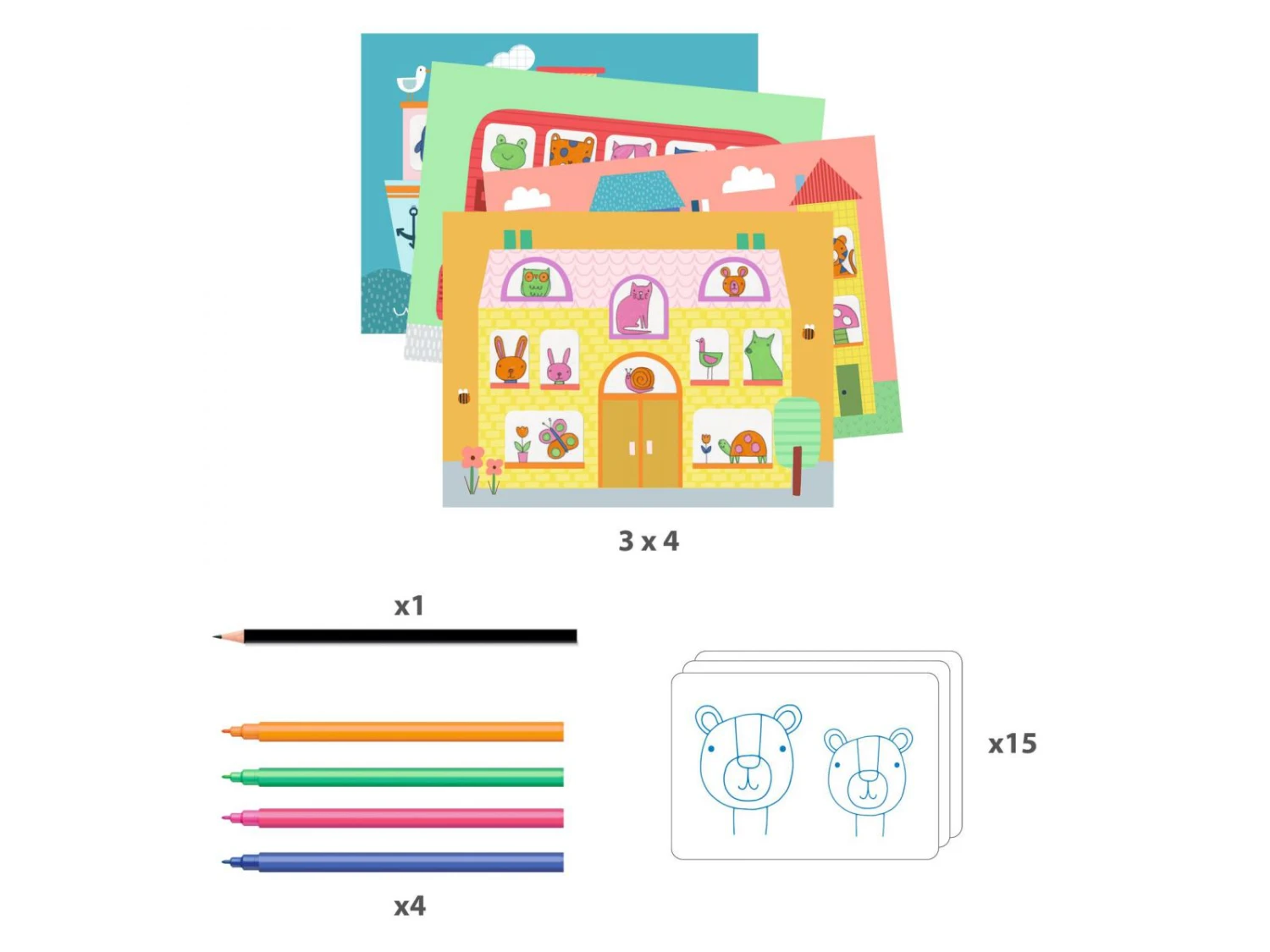 Une activité de dessin pour décalquer trente personnages au crayon à papier, les colorier et les mettre en scène dans les décors. Décalquer devient tout un art !