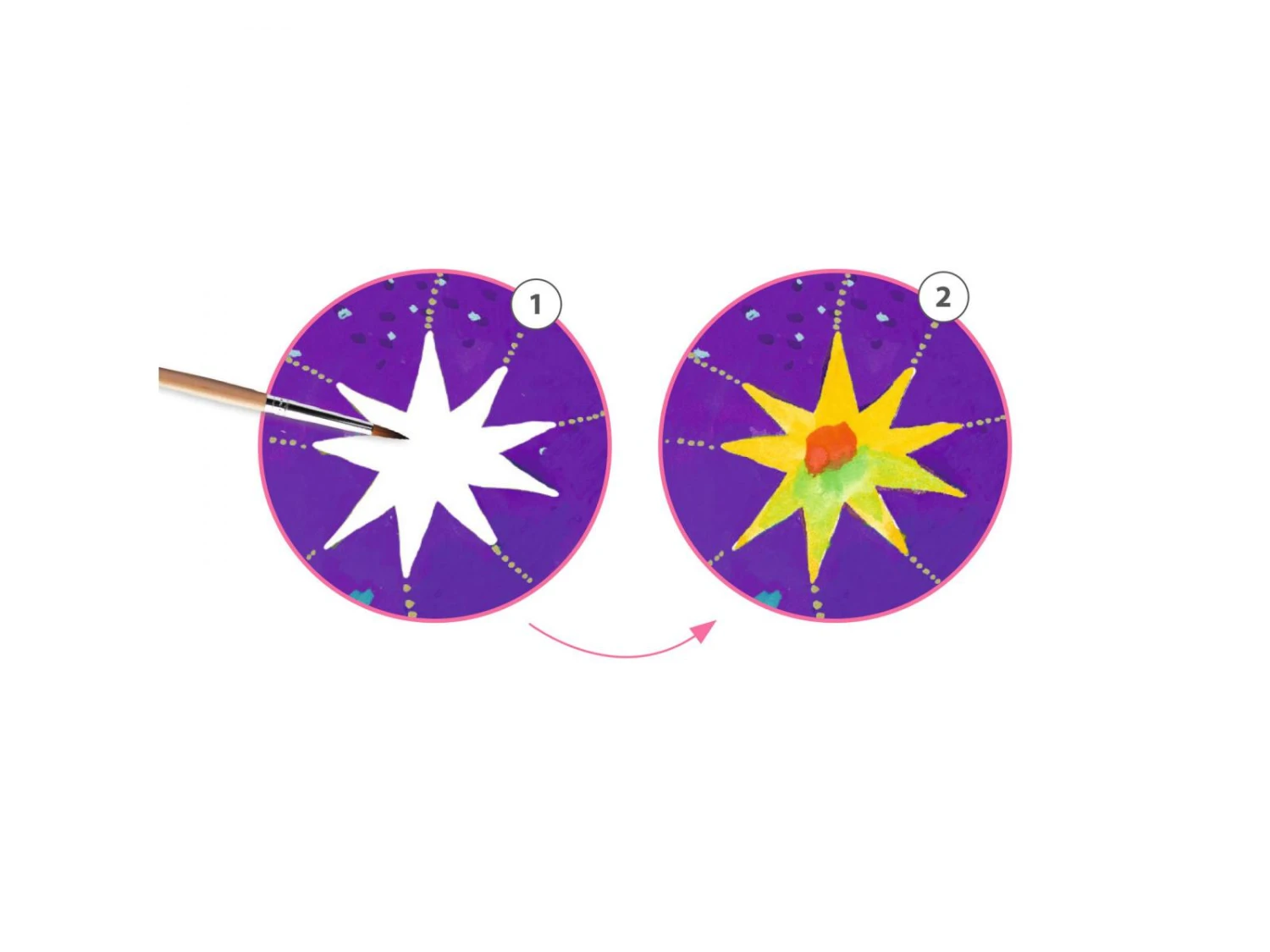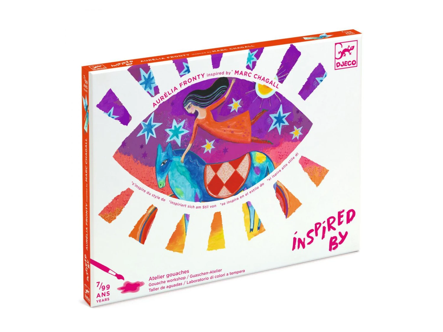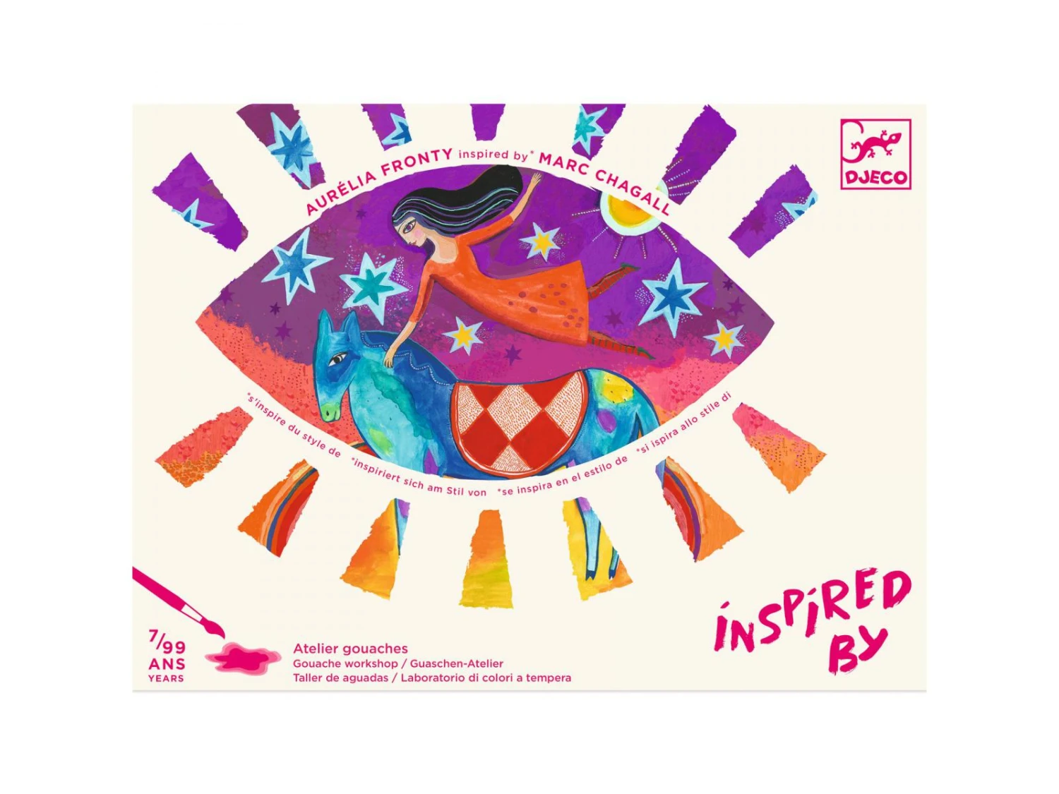 Une activité de peinture aux illustrations inspirées du style du grand maître surréaliste, Marc Chagall. L’enfant ajoute les couleurs par touches et les superpose pour révéler les secrets de ces personnages flottants dans les airs.