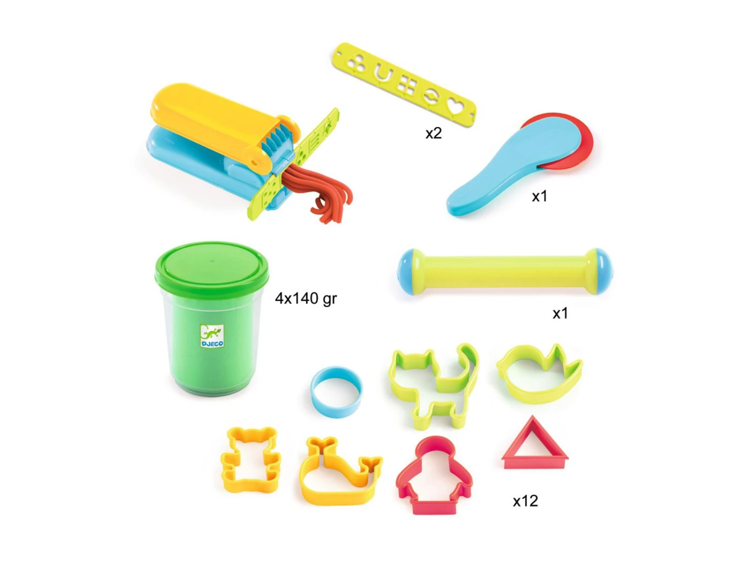 Un premier coffret de pâte à modeler complet pour les enfants, dès 18 mois. 17 accessoires et 4 pots de pâte à modeler ultra souple et parfumée pour patouiller et créer en toute liberté.
