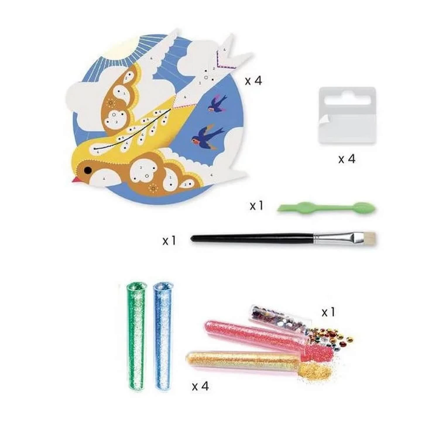 Découvrez les tableaux à pailleter avec strass de la marque Djeco dans une thème haut en couleurs avec ces oiseaux paradisiaques !