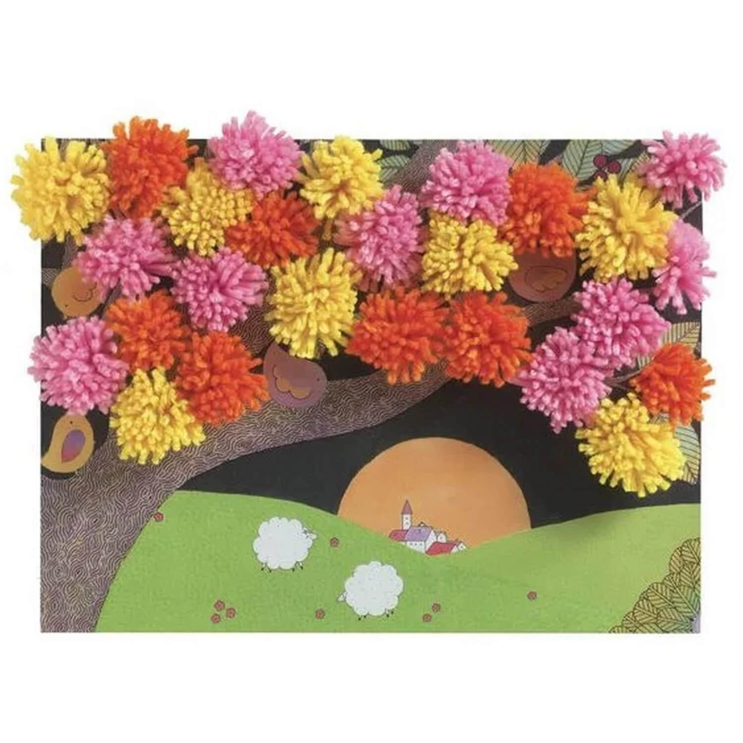 Découvrez le tableau de pompons de la marque Djeco, une activité manuelle haute en couleur pour créer avec des pompons !