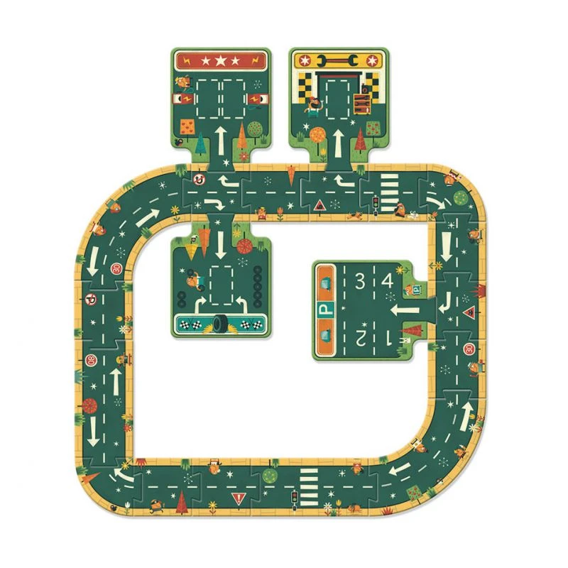 Routes est un jouet à la frontière entre les puzzles, les jeux de construction et les jeux d’imagination. Ce puzzle original de la collection Pop To play est composé de 21 pièces représentant des portions de routes et des parking de boutiques. L’enfant s’amusera dans un premier temps à créer un circuit en se basant sur les exemples ou en assemblant les pièces à sa guise. Ensuite, il pourra utiliser ses petites voitures (non fournies) pour jouer sur le circuit qu’il vient de construire.
